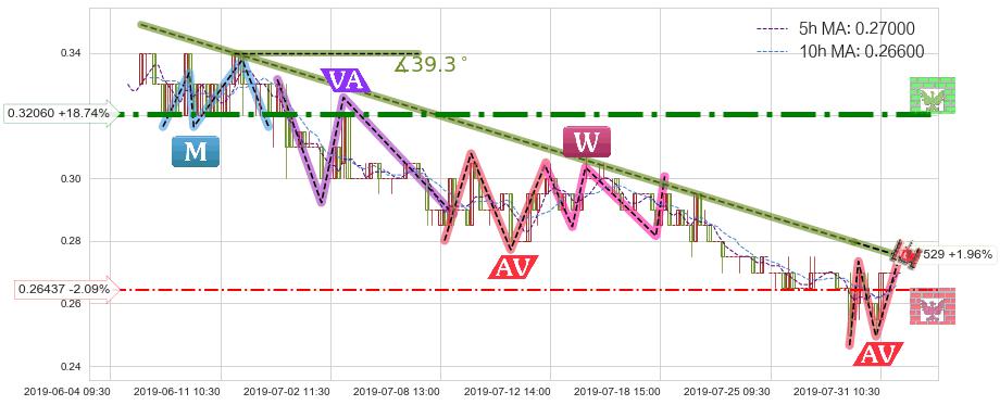 ➢ 预测:2019-08-01 14:00,【小幅反弹】稳定目前下跌趋势的前提下,预测价格:0.27314