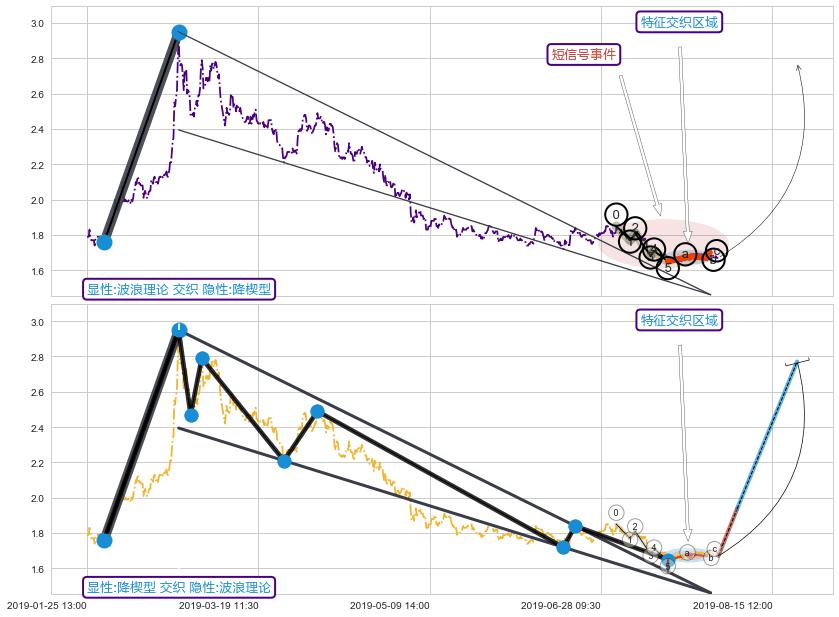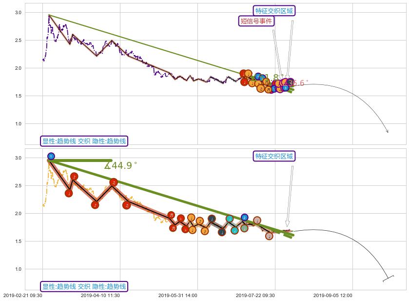 ➢ 趋势线属【短级别信号事件】降楔型属【长级别信号事件】长短周期组合信号事件, 短长事件长度比13.66%