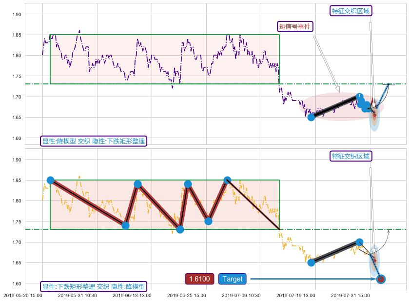 ➢ 下跌矩形整理:猜想预期下跌目标target即将达成,随后猜想强支撑来临,预期反弹上涨(均值回复)