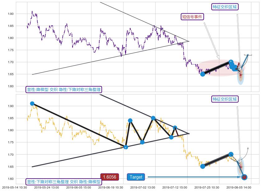 ➢ 降楔型属【短级别信号事件】下降对称三角整理属【长级别信号事件】长短周期组合信号事件, 短长事件长度比24.02%