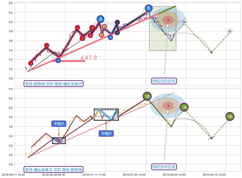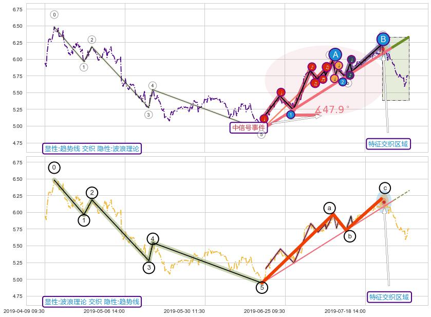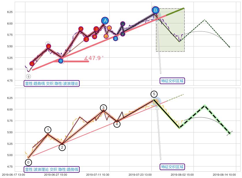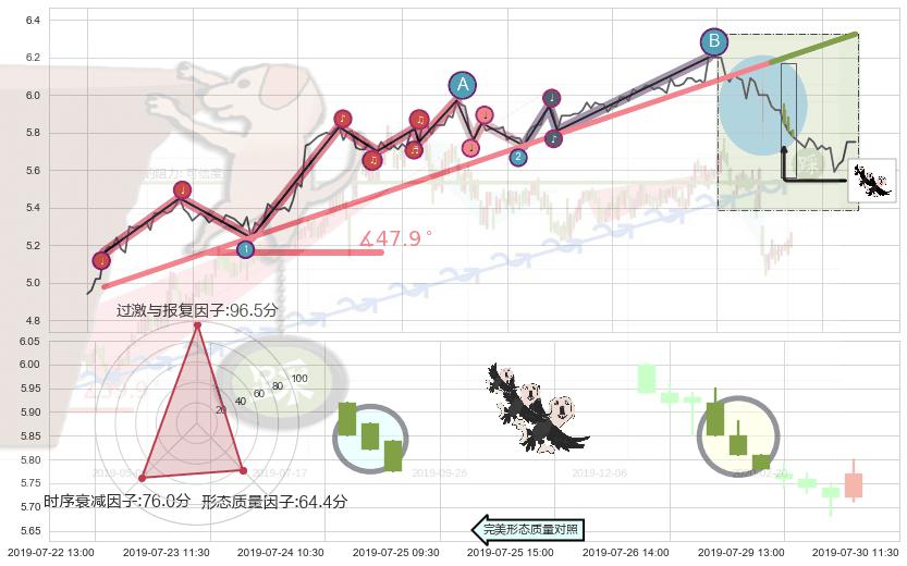 ➢ 2019-06-19 09:30-2019-07-26 13:00上升趋势存在反转[风险],其原上升趋势的支撑位(6.33)已破位[强阻力信号],原上升趋势角度: 47.9˚