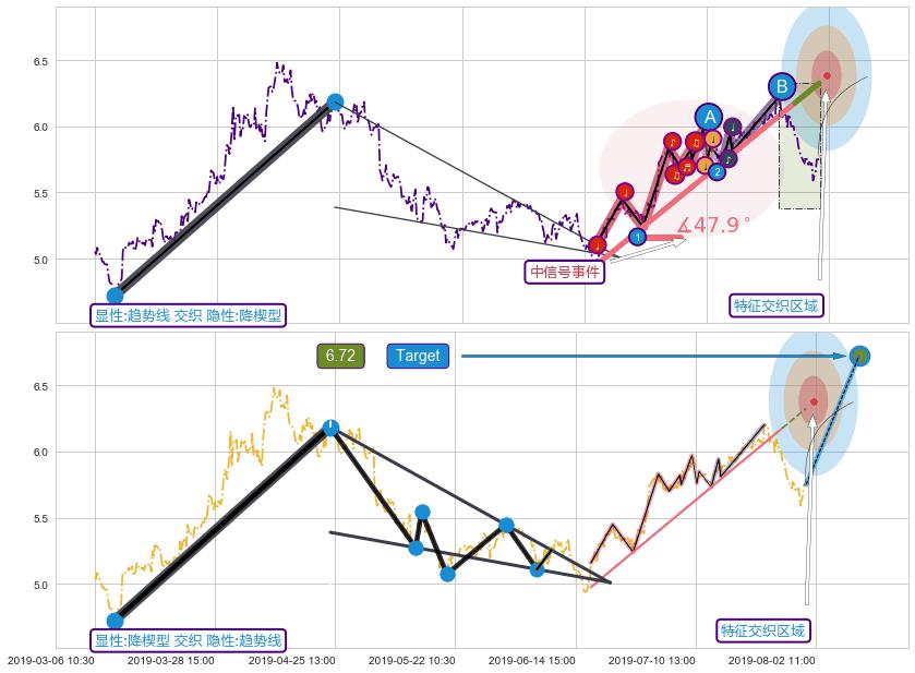 ♘ 阻力价格位5.94,可信任强度45.07%,距离最后交易2019-07-31 15:00形成的收盘价格5.75相差 +3.35%