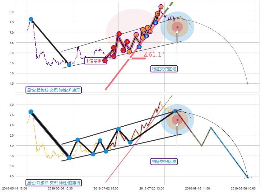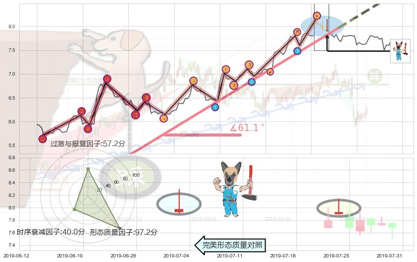 ➢ 2019-06-25 10:30-2019-07-25 14:00上升趋势存在反转[风险],其原上升趋势的支撑位(8.70)已破位[强阻力信号],原上升趋势角度: 61.1˚
