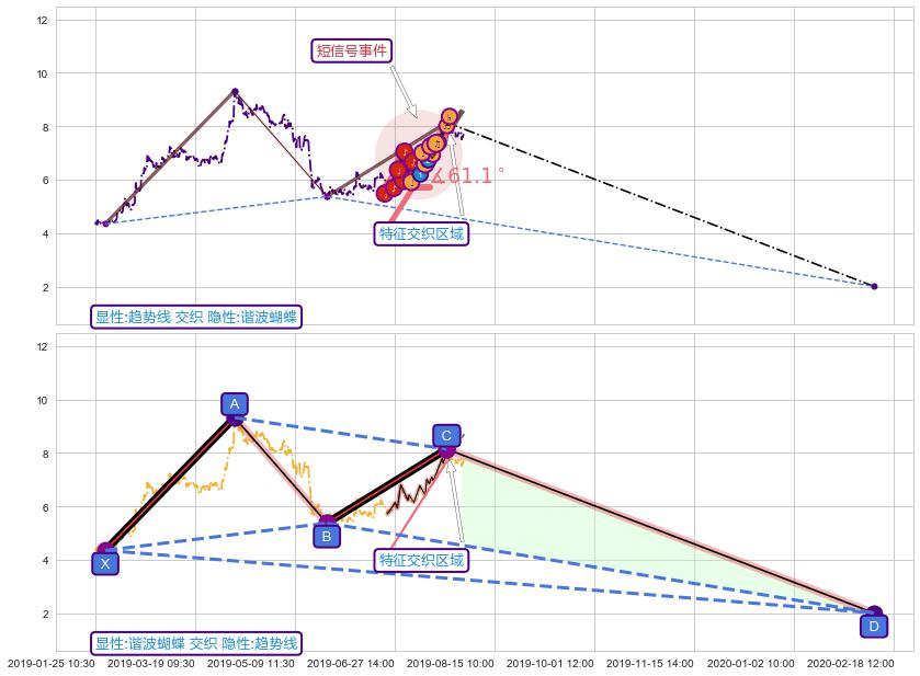 ➢ 趋势线属【短级别信号事件】谐波蝴蝶属【长级别信号事件】长短周期组合信号事件, 短长事件长度比17.50%