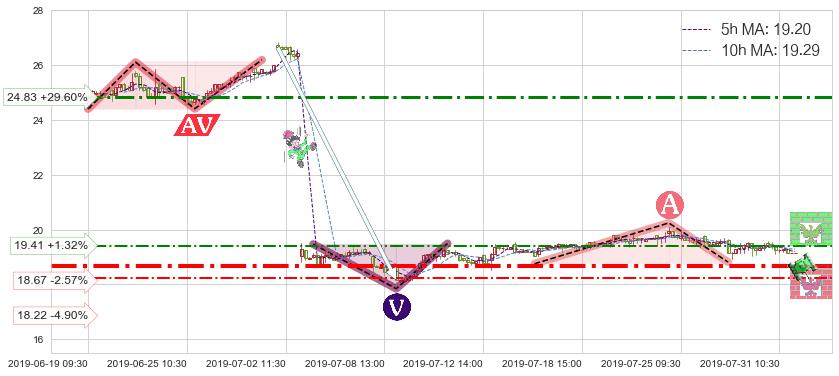 ♘ 阻力价格位19.41,可信任强度53.17%,距离最后交易2019-07-31 15:00形成的收盘价格19.16相差 +1.32%