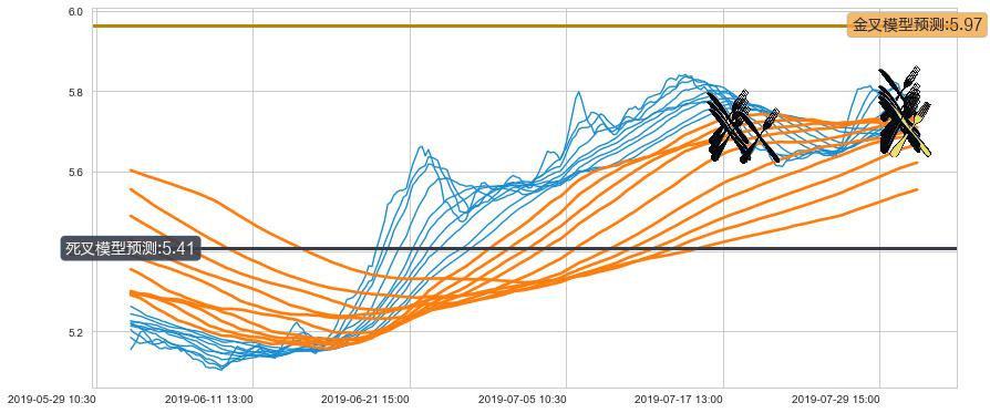 ➣ 60小时均线于(07-31 11:30: 5.70)形成【金叉】基于【金叉历史模型】预测金叉后最高波峰价格: 5.99, 金叉后最高价格5.71,尚未达到预测最高波峰价格, 预期继续上涨