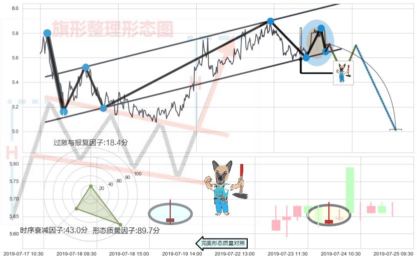 ➢ 🕰 价格走势在2019-07-18 09:30:00至2019-07-18 09:30:00期间形成看跌(高位倒锤头)流星线,残存影响值:-2.16