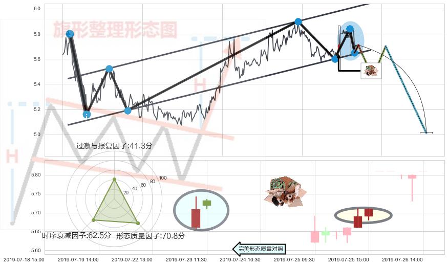 ➢ 🕰 价格走势在2019-07-25 14:00:00至2019-07-25 15:00:00期间形成顶部尽头线(下山虎),残存影响值:-3.75