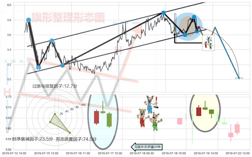 ➢ 🕰 价格走势在2019-07-23 14:00:00至2019-07-23 14:00:00期间形成看跌(高位倒锤头)流星线,残存影响值:-3.85