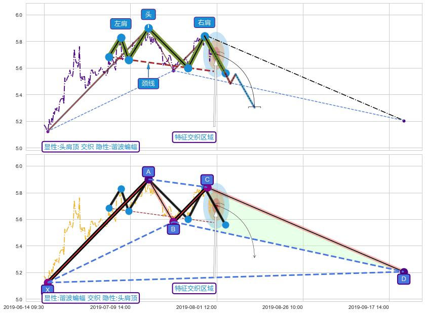 ➢ 头肩顶与谐波蝙蝠信号事件周期长度级别相同,同周期信号事件