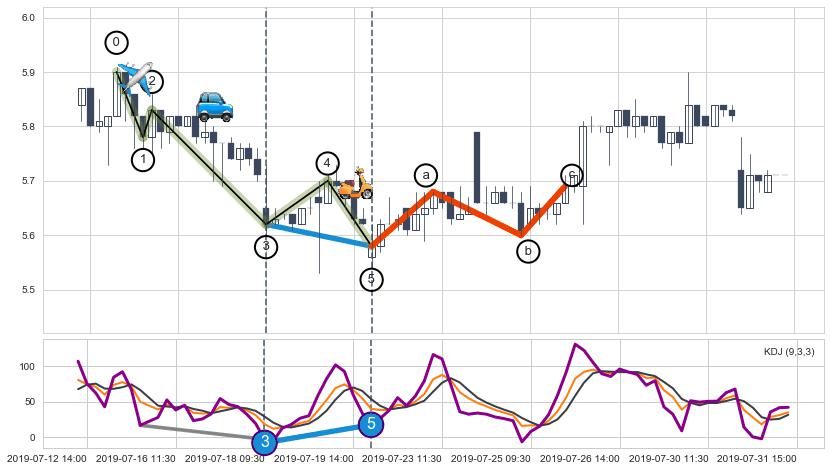 从2019-07-30 09:30至2019-07-31 15:00,共包含12个小时,阶段股价下跌-2.20%,阶段股价变动位移路程比: 1 : 2