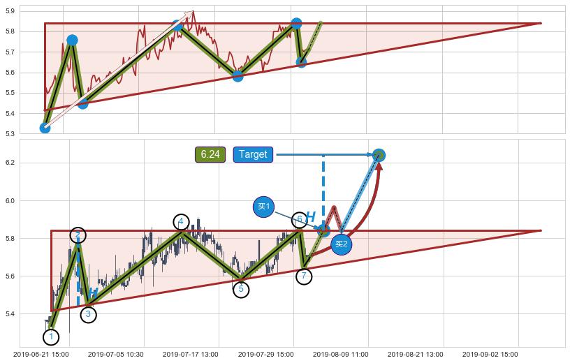 ➢ 【仅预测突破】最后价格:5.71与预测突破价格:5.84→【空间中等】后续最小【整理】第一目标价格→(08-12:12: 6.24 )