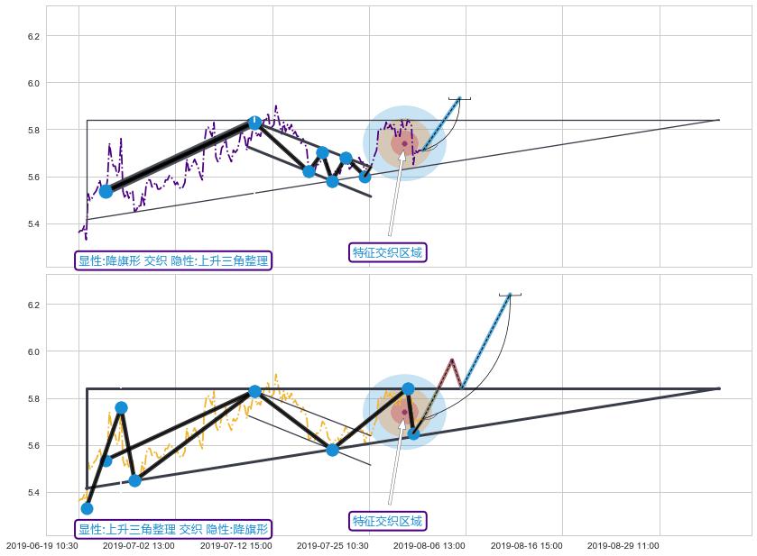 ➢ 降旗形与上升三角整理信号事件周期长度级别相同,同周期信号事件