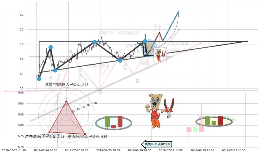 ➢ 🕰 价格走势在2019-07-24 00:00:00至2019-07-25 00:00:00期间形成上涨身怀六甲,残存影响值:6.14