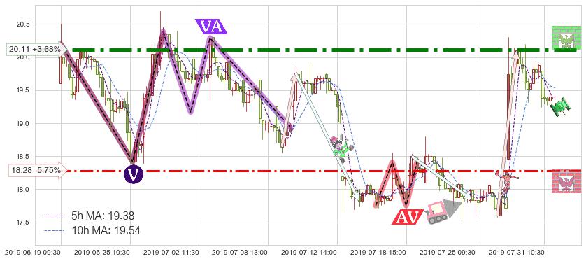 ♘ 阻力价格位20.11,可信任强度85.47%,距离最后交易2019-07-31 15:00形成的收盘价格19.40相差 +3.68%