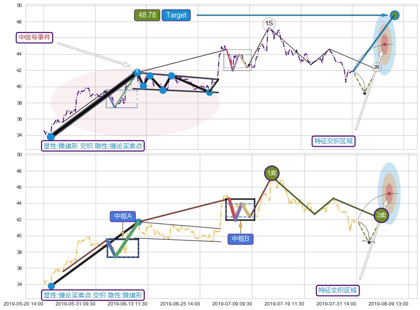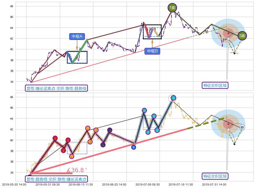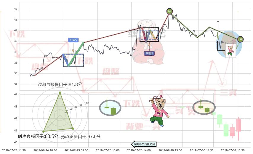 从2019-07-23 09:30至2019-07-31 15:00,共包含42个小时,阶段股价下跌-1.74%,阶段股价变动位移路程比: 1 : 13