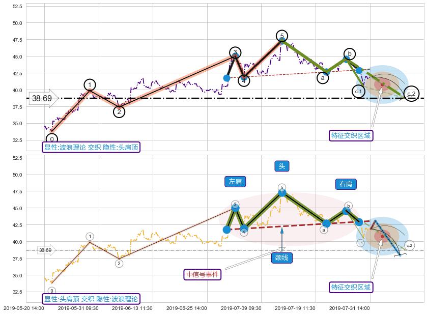 ➢ 头肩顶支撑破位转换阻力下跌 🔜 波浪理论临近C点后破位C下跌 综合量化分数:37.95 【偏空】