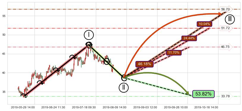 ➢ 大趋势走坏(跌破5浪起点位置)概率53.82%