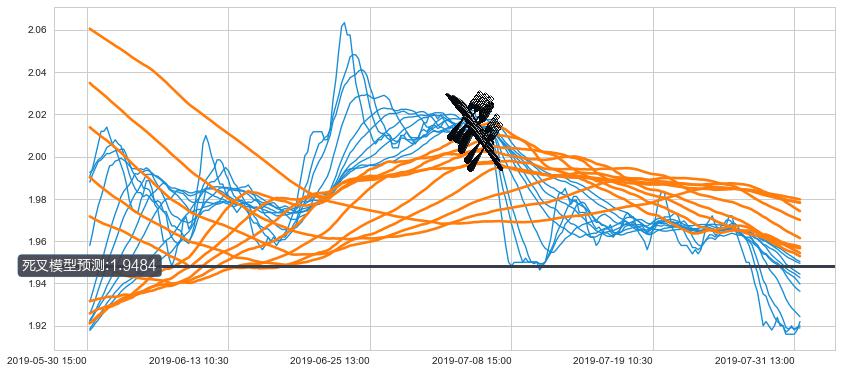 ➣ 90小时均线于(07-05 10:30: 2.004)形成【死叉】基于【死叉历史模型】预测死叉后最低波谷价格: 1.9204, 死叉后最低价格1.9000,已经下跌超出预测最低波谷价格, 预期反弹