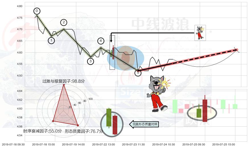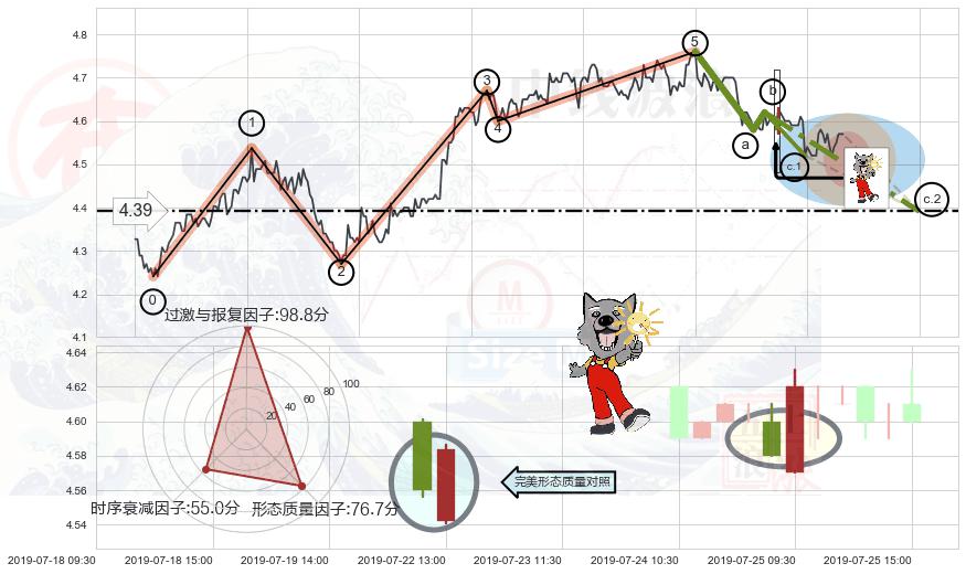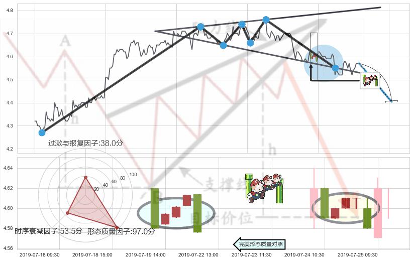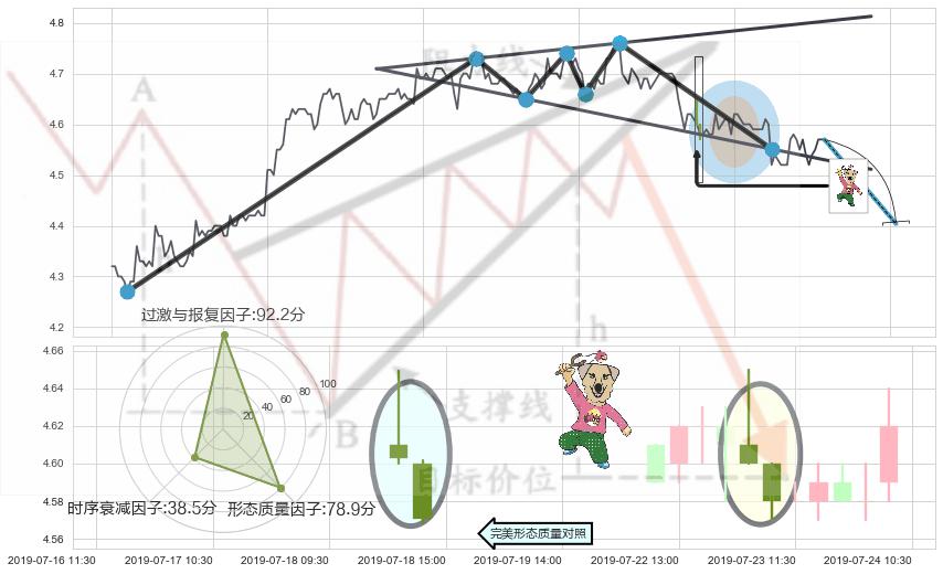 ➢ 🕰 价格走势在2019-07-23 09:30:00至2019-07-23 10:30:00期间形成射击之星形态,残存影响值:-4.18