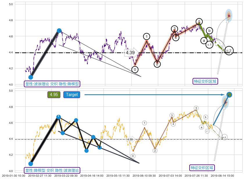 ➣ 【仅预测突破】最后价格:4.57与预测突破价格:4.59→【空间临近】后续最小【整理】第一目标价格→(08-20:14: 5.06 )