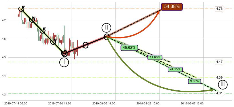 ➢ 循环浪继续向下【最低】位置(09-06:15, 4.31),匹配聚类样本比例21.47%, 可能性概率9.80%