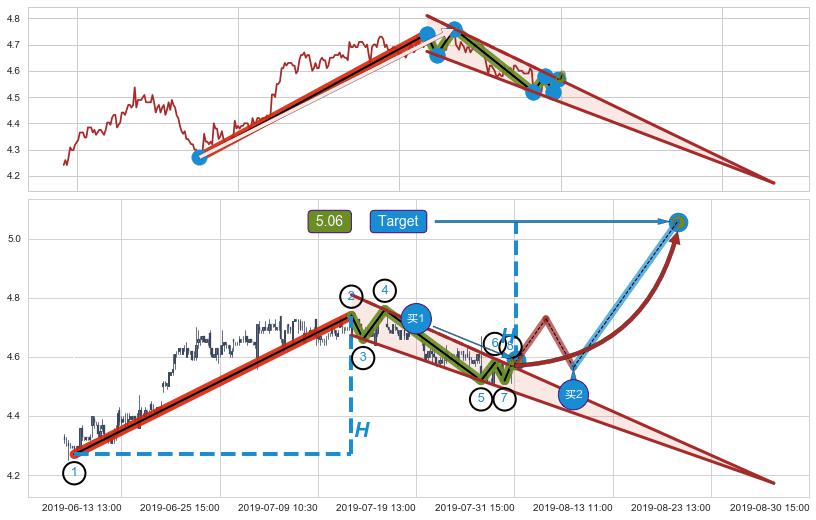 ➢ 最小中继整理涨幅→𝐇: 0.47000 (𝐇楔型旗杆的长度:楔型起点→顶点)