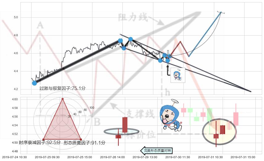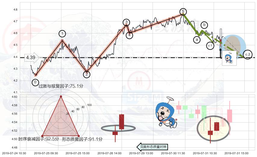 ➢ 🕰 价格走势在2019-07-31 09:30:00至2019-07-31 10:30:00期间形成上涨螺旋桨形态,残存影响值:7.73