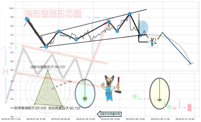 ➢ 🕰 价格走势在2019-07-30 09:30:00至2019-07-30 09:30:00期间形成看跌(高位倒锤头)流星线,残存影响值:-8.81