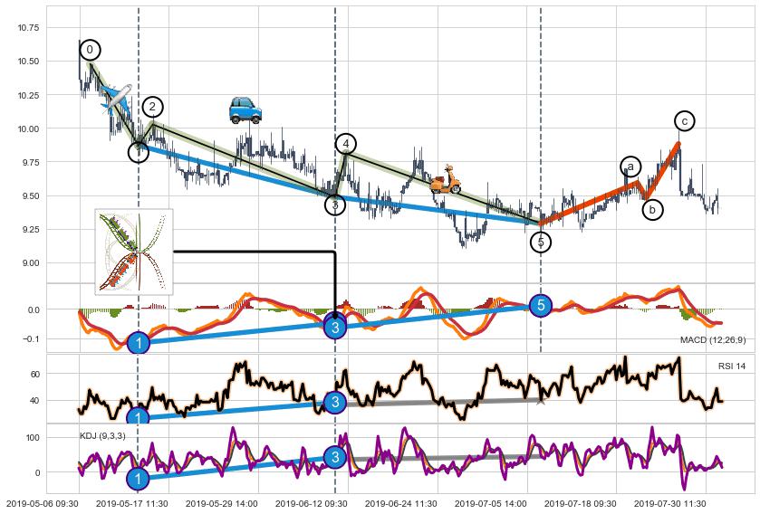 ➣ 波浪理论:猜想达到c点后小反弹终止反转下跌 → 下跌 → 【拐点】临近 → 阶段均值回复结束后继续大周期趋势跟踪