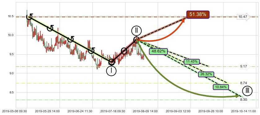 ➢ 循环浪继续向下【最低】位置(10-14:11, 8.30),匹配聚类样本比例22.29%, 可能性概率10.84%
