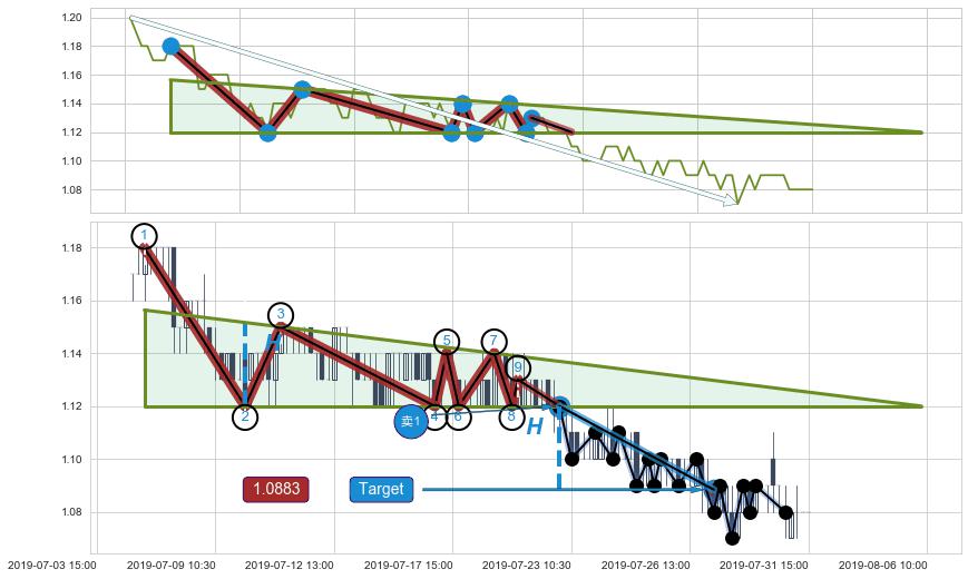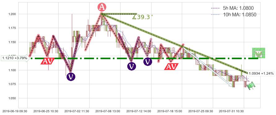 2019-07-10: 第一阻力位1.1210有效抑制了下跌浪,成功阻止了价格的继续下跌。
