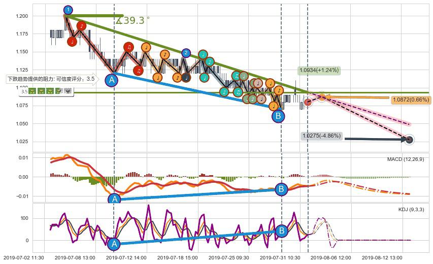 ➢ 预测:2019-08-02 10:00,【小幅反弹】稳定目前下跌趋势的前提下,预测价格:1.0872