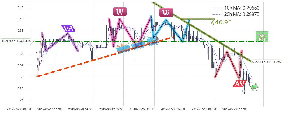 ♘ 阻力价格位0.36137,可信任强度67.23%,距离最后交易2019-07-31 15:00形成的收盘价格0.29000相差 +24.61%