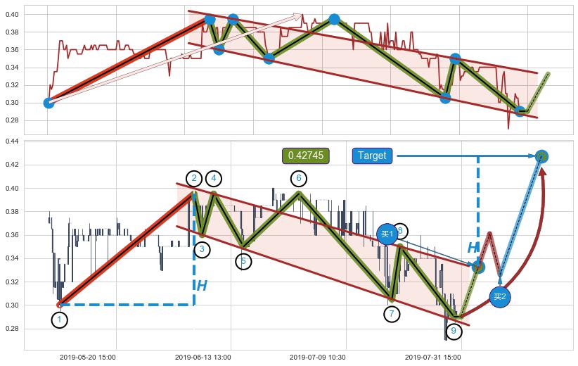 ➣ 最小中继整理跌幅→𝐇: 0.0500000 (上平行阻力线与下平行支撑线的垂直距离)