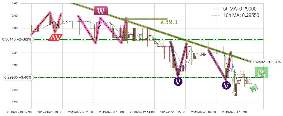➢ 预测:2019-08-05 12:00,【后劲十足】稳定目前下跌趋势的前提下,预测价格:0.26940