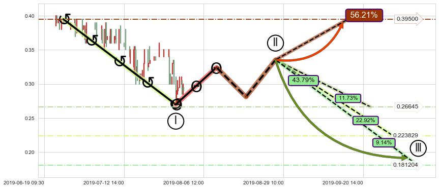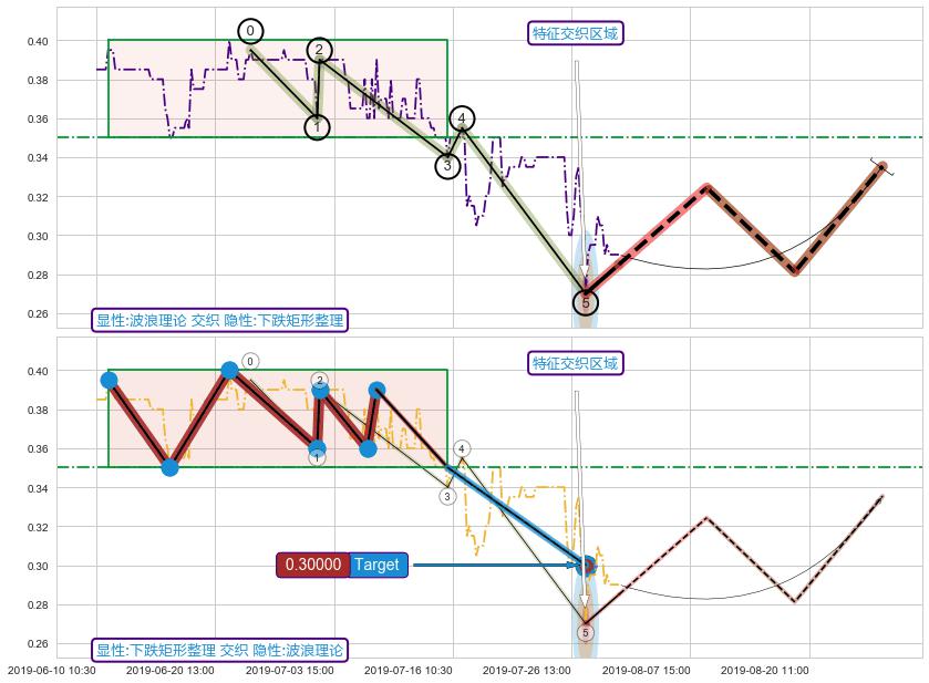 ♘ 在最后的下跌阶段2019-06-25 09:30至2019-07-30 10:30,存在 持续未破位的阻力位 ,阻力价格0.32492,可信任强度83.70%,其距离最后价格0.29000相差 +12.04%