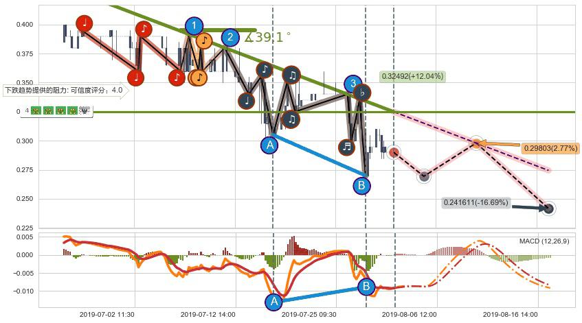 ➣ 预测:2019-08-09 14:00,【小幅反弹】稳定目前下跌趋势的前提下,预测价格:0.29803