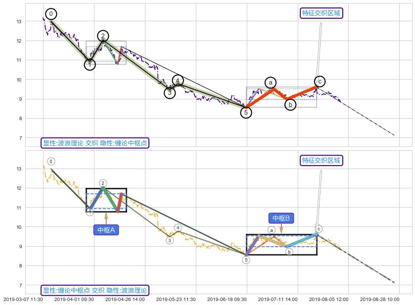 ➢ 波浪理论与缠论中枢点信号事件周期长度级别相同,同周期信号事件