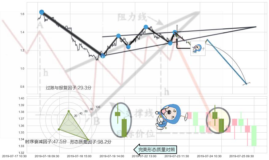 ➢ 🕰 价格走势在2019-07-24 09:30:00至2019-07-24 10:30:00期间形成下跌螺旋桨,残存影响值:-3.84