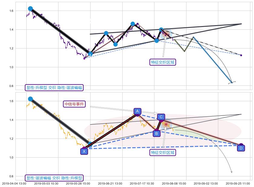➢ 谐波蝙蝠属【中级别信号事件】升楔型属【长级别信号事件】中长周期组合信号事件,中长事件长度比64.40%