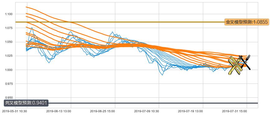 ➢ 21小时均线于(07-31 11:30: 1.0124)形成【死叉】基于【死叉历史模型】预测死叉后最低波谷价格: 0.9401, 死叉后最低价格1.0100,尚未达到预测最低波谷价格, 预期继续下跌