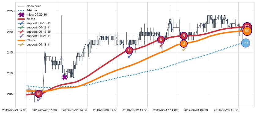 05-24 15:00至06-26 15:00 慢线与快线呈多头排列, 慢线与快线接触少,无缠绕