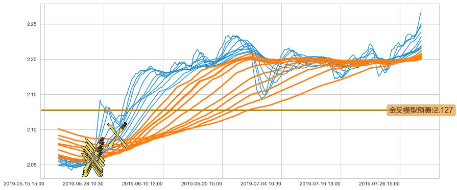 ➣ 100小时均线于(05-24 13:00: 2.057)形成【金叉】基于【金叉历史模型】预测金叉后最高波峰价格: 2.117, 金叉后最高价格2.270,已经上涨超出预测最高波峰价格, 预期回调