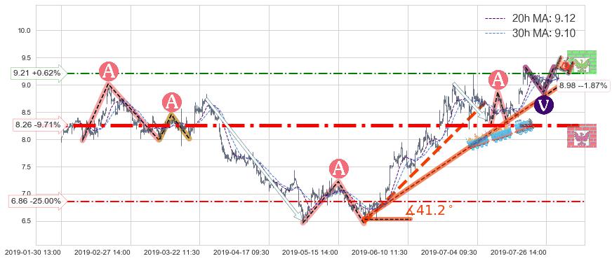 ♞ 20小时均线:9.12,30小时均线:9.10→ 快线>慢线