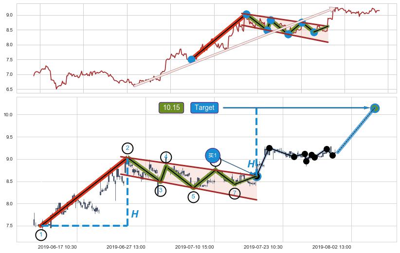 ➣ 最小中继整理涨幅→𝐇: 1.5330 (𝐇旗杆的长度:旗杆起点→顶点)