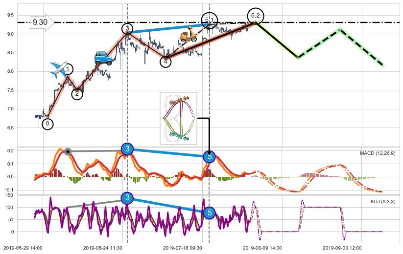➣ 5.1: 预测当前第5浪位置(07-19:13, 9.25),仍然有上升空间