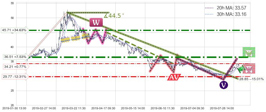 ♘ 阻力价格位36.51,可信任强度87.82%,距离最后交易2019-07-31 15:00形成的收盘价格33.95相差 +7.53%