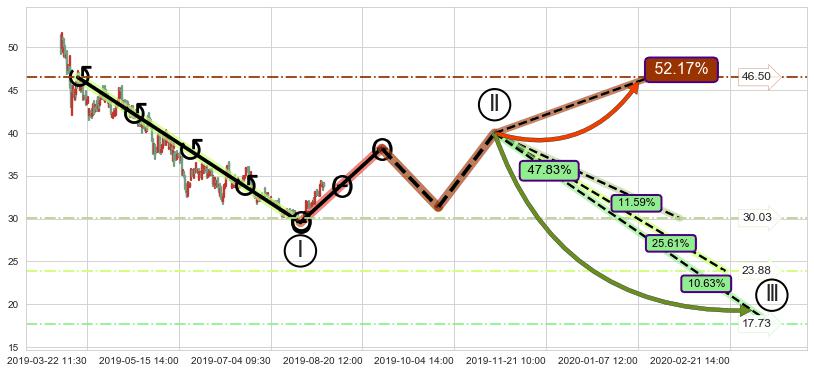 ➣ 大趋势循环浪继续向下概率47.83%