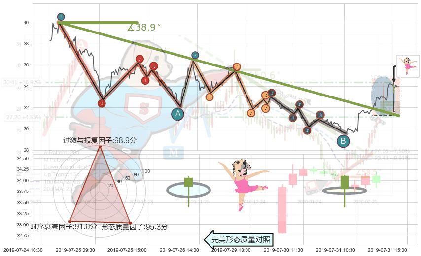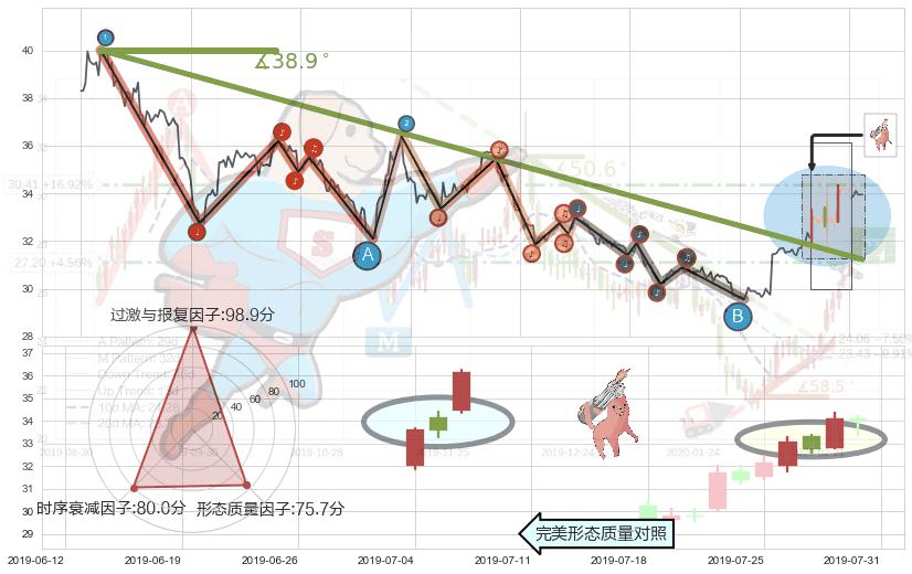➢ 2019-05-08 09:30-2019-07-23 11:30下跌趋势存在反转上涨[机会],其原下跌趋势的阻力位(31.23)已被突破[强支撑信号],原下跌趋势角度: 38.9˚